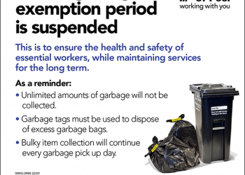 Brampton, ON. (January 5, 2022) – Peel Region advises residents that the winter garbage exemption period (originally scheduled...