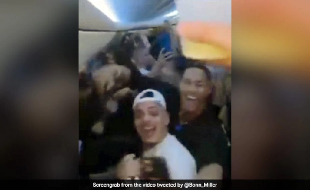 In one video which went viral on social media, a bottle of vodka is seen being passed around. In another, a woman appears to be smoking an electronic cigarette mid-air.