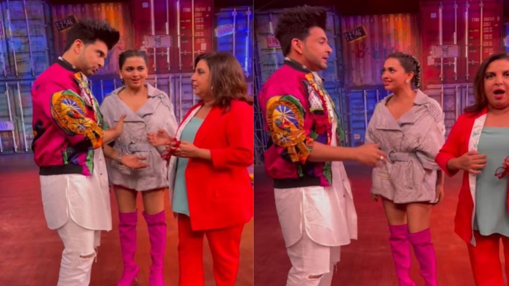 In this hilarious video, Farah asks Karan, “What is the thing that Teja has and I have not?”, Karan kisses Farah’s hand. Then, Tejasswi comes there and said, “Are you serious?”. Karan gets scared and tells Farah, “Ma’am, I was just asking you that how do we take out the wedding dates with (Teja)”. After that, Farah walks away and Tejasswi also walks away in anger. Bharti Singh comes there, hugs Karan and says, “Mai hu na”.