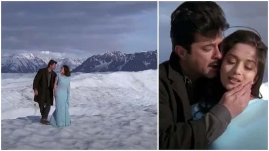 Madhuri was talking about how the actors need to lip-sync most of the songs, along with expressions, unless they are in an unfavourable weather situation, where even moving your lips become difficult. A similar situation occurred when she filmed the Pukaar song on a glacier in Alaska with Anil Kapoor. While Anil wore jeans, a t-shirt, and an overcoat, Madhuri only wore a light blue chiffon saree for the song.