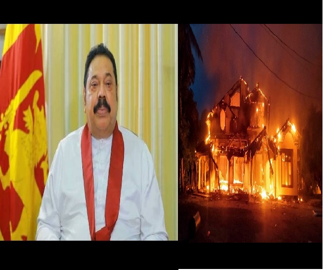 Sri Lanka Prime Minister Mahinda Rajapaksa’s residence in the city of Kurunegala in the north-western province was set on fire by protestors after he resigned amid protests.
